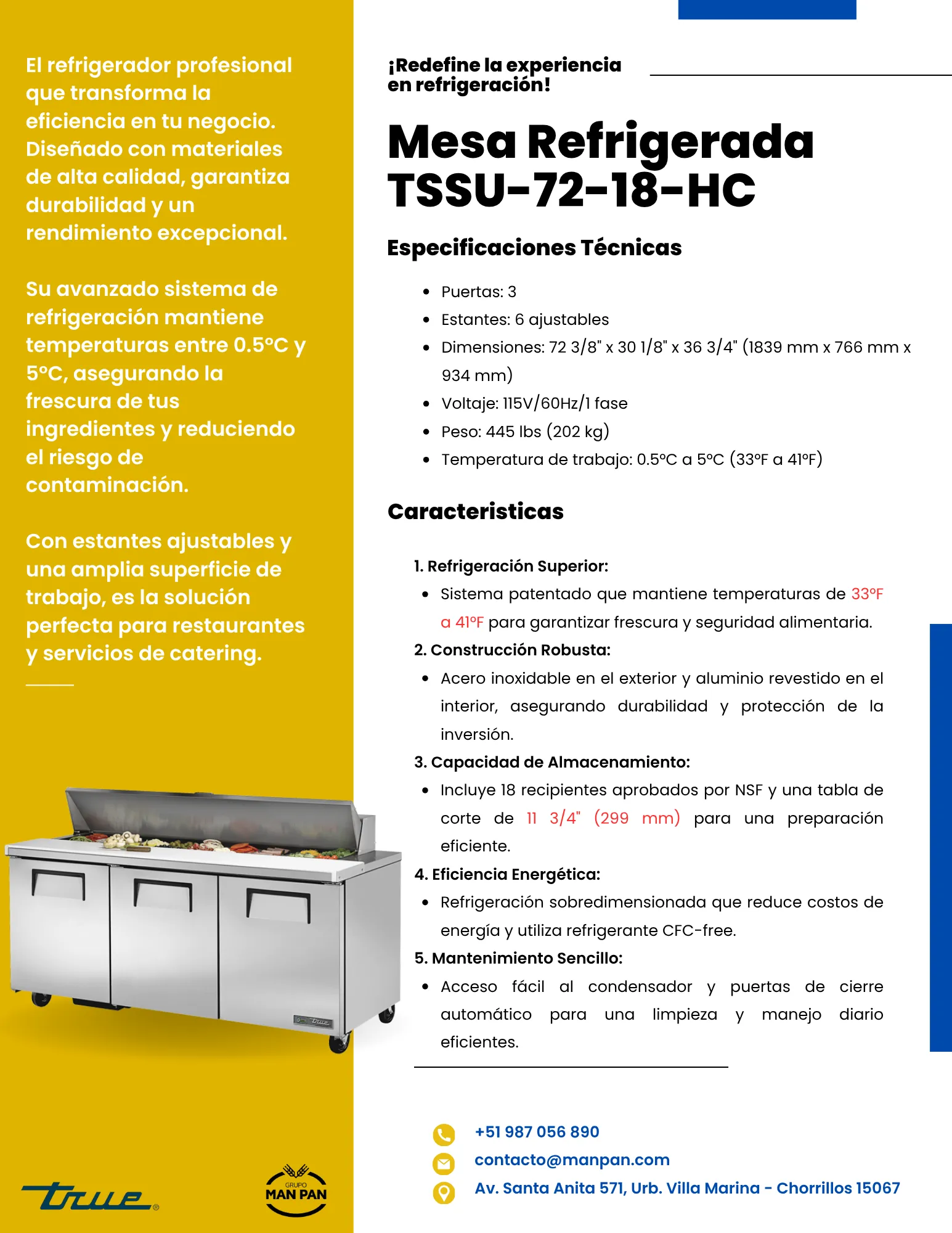 Interior: laterales, parte posterior y piso con esquinas cóncavas de acero inoxidable; incluye 18 insertos de 1/6 GN (100 mm de profundidad) en la parte superior; aislamiento de poliuretano de alta densidad; 6 estantes ajustables de alambre recubierto de PVC.